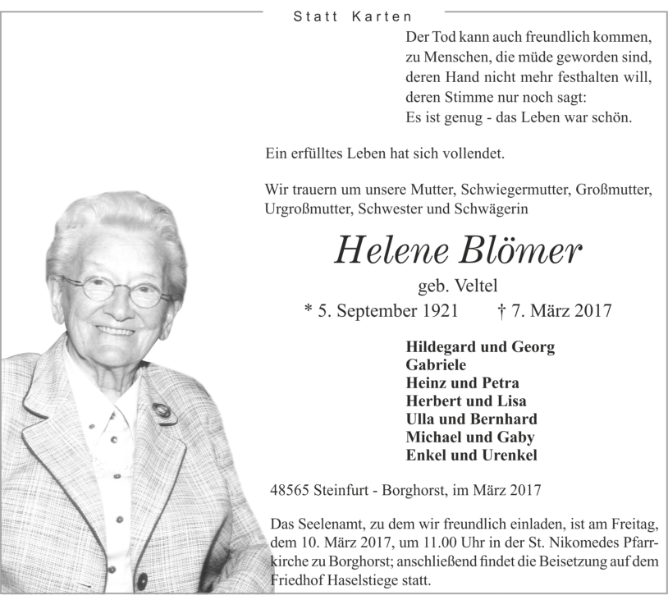 Helene Blömer geb. Veltel