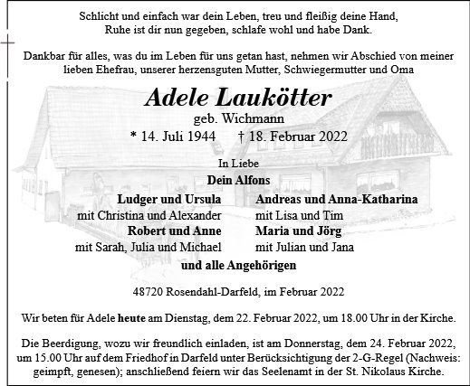wir wünschen Ihnen von Herzen viel Kraft, dass Sie Menschen um sich haben, die Ihnen in dieser schweren Zeit beistehen und Halt geben. Zusätzlich können Sie auf dieser Gedenkseite Erinnerungen teilen und so das Andenken gemeinsam wachhalten.