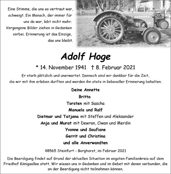 wir wünschen Ihnen von Herzen viel Kraft, dass Sie Menschen um sich haben, die Ihnen in dieser schweren Zeit beistehen und Halt geben. Zusätzlich können Sie auf dieser Gedenkseite Erinnerungen teilen und so das Andenken gemeinsam wachhalten.