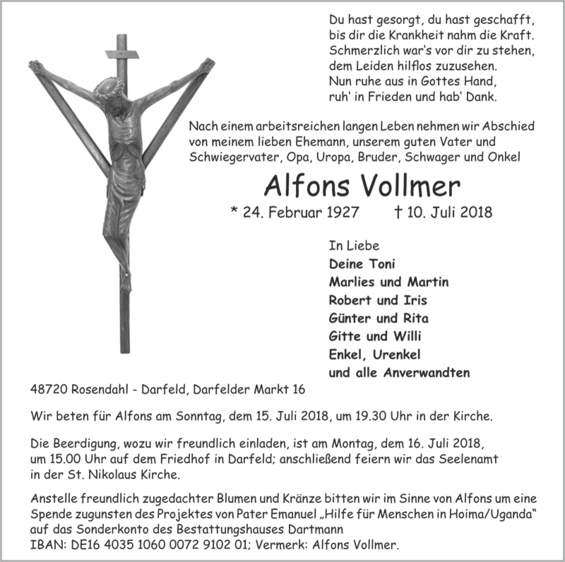 Seelenamt, St. Nikolaus Kirche Darfeld