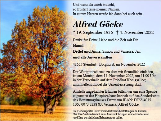 Lesen Sie hier die Anzeigen und Trauerpost!