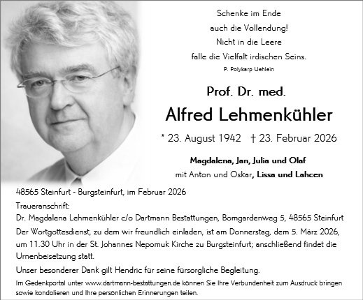geboren am 23. August 1942 in Arnsberg gestorben am 23. Februar 2026 in Gronau