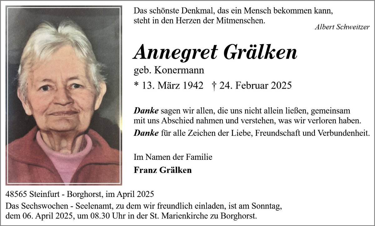 Wir wünschen ihnen unser herzliches Beileid. Annegret war bei uns im Tagestreff Hof Lünnemann immer sehr herzlich, sehr kreativ und sie hat immer gerne gesungen.
