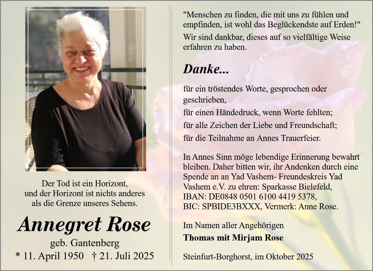 Annegret Rosegestorben am 21. Juli 2025