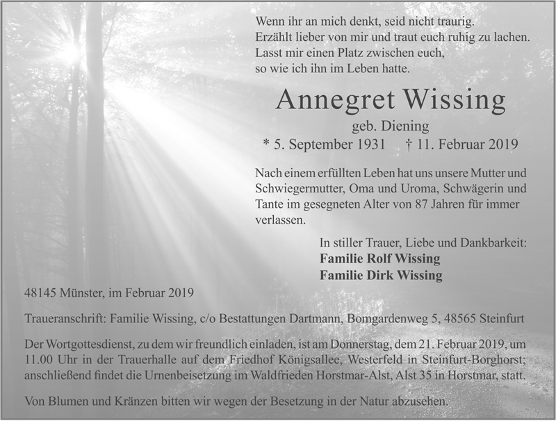 Urnenbeisetzung, Waldfrieden Horstmar-Alst GmbH