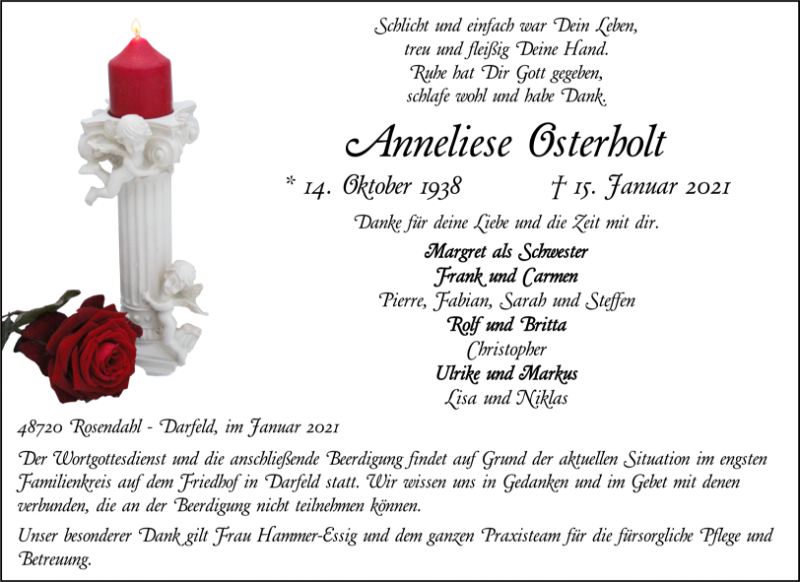 Anneliese Osterholtgestorben am 15. Januar 2021