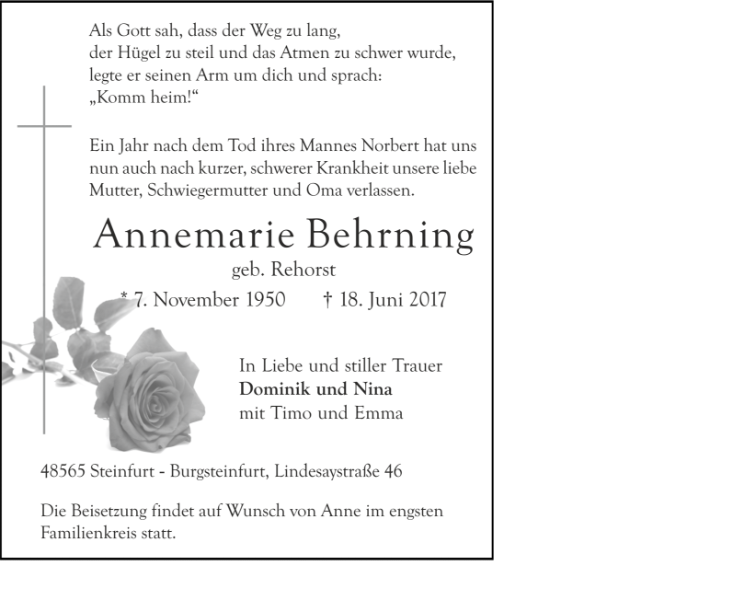 Annemarie Behrning geb. Rehorst