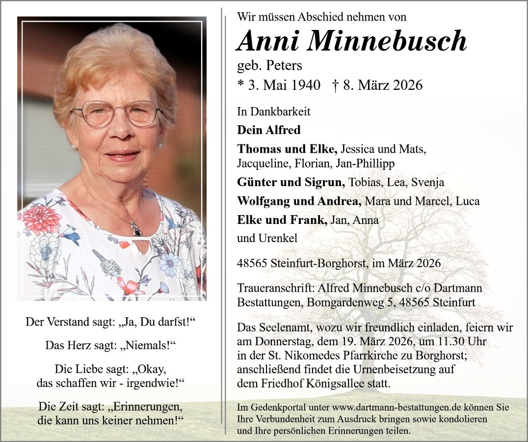 geboren am 3. Mai 1940 in Steinfurt gestorben am 8. März 2026 in Steinfurt