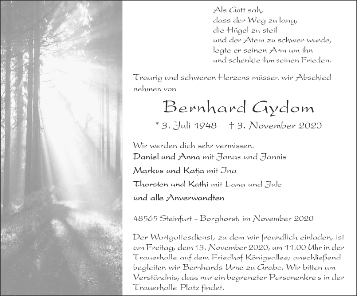 Bernhard Gydomgestorben am 3. November 2020