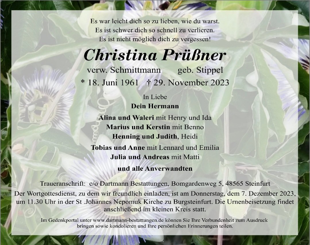 Unser tiefes Mitgefühl zum plötzlichen Tod Deiner Frau.