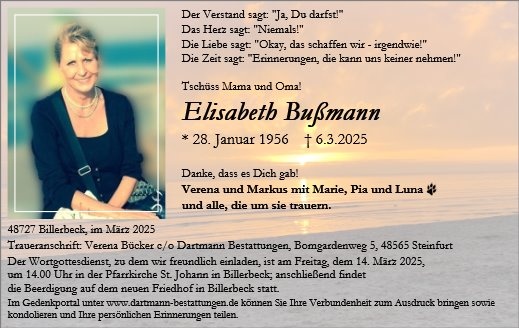 wir haben sehr erschrocken die Traueranzeige in der Zeitung gelesen. Es tut uns so leid. Wir haben deine Mutter, Schwiegermutter und eure Oma immer als sehr nette und angenehme Nachbarin erlebt, als sie vor vielen Jahren den Anfang machte, euer Haus immer weiter zu verschönern.