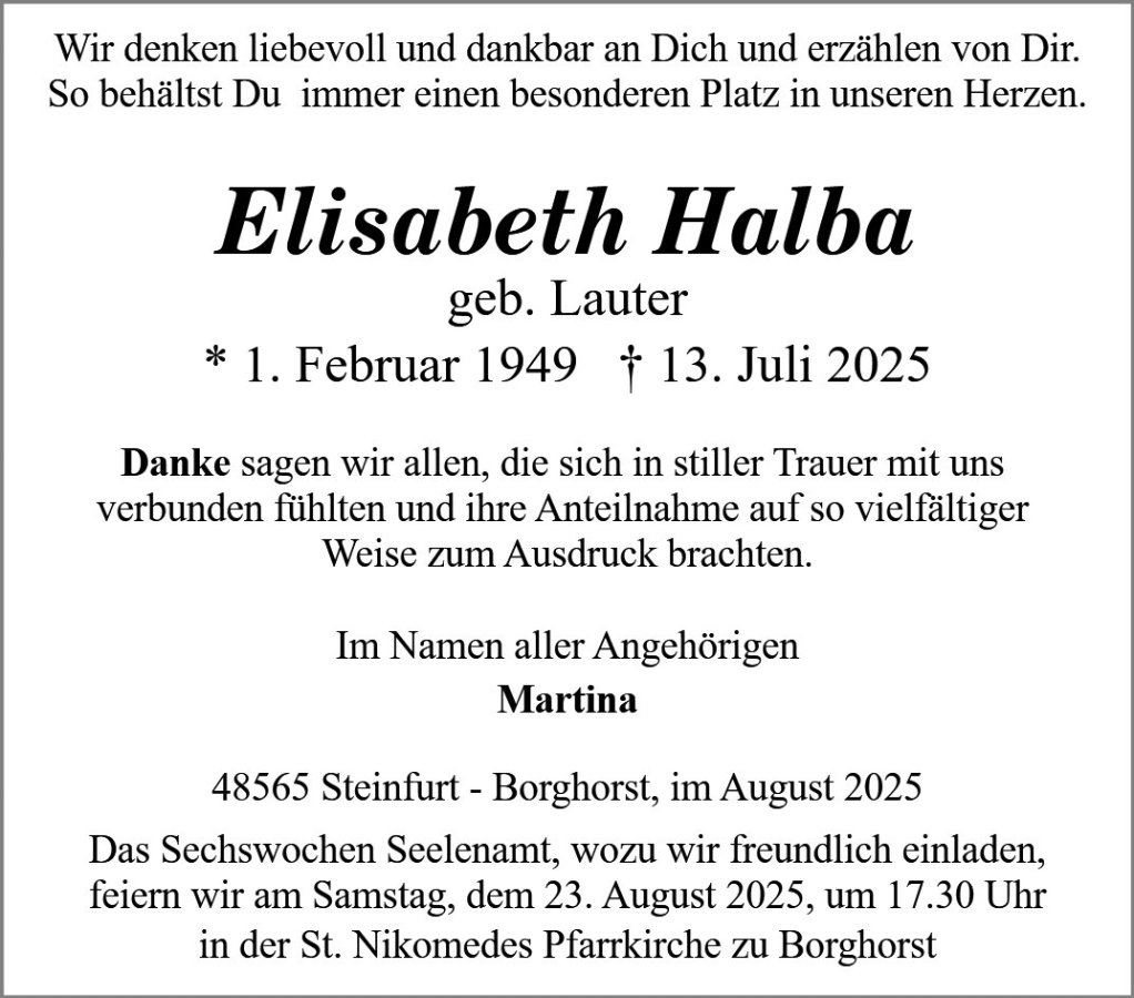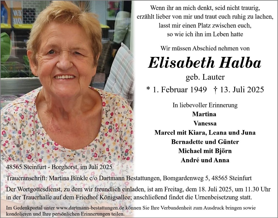 Elisabeth Halbagestorben am 13. Juli 2025