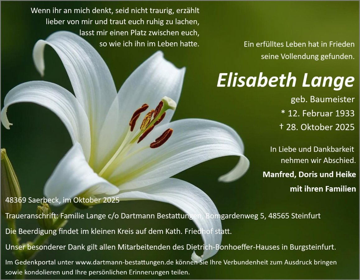 Elisabeth Langegestorben am 28. Oktober 2025