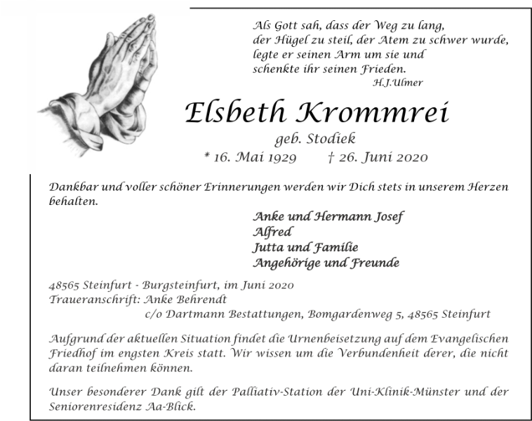 wir wünschen Ihnen von Herzen viel Kraft, dass Sie Menschen um sich haben, die Ihnen in dieser schweren Zeit beistehen und Halt geben. Zusätzlich können Sie auf dieser Gedenkseite Erinnerungen teilen und so das Andenken gemeinsam wachhalten.