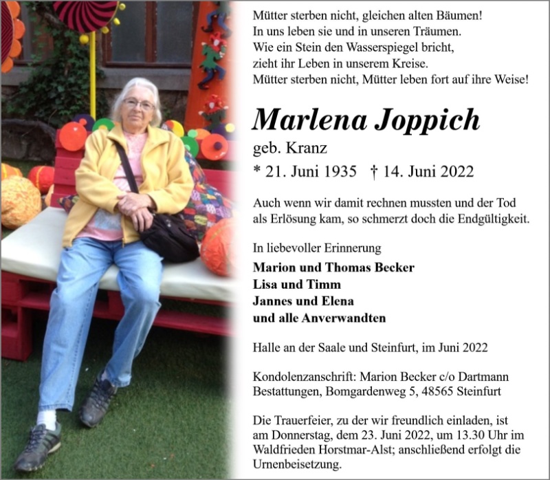 wir wünschen Ihnen von Herzen viel Kraft, dass Sie Menschen um sich haben, die Ihnen in dieser schweren Zeit beistehen und Halt geben. Zusätzlich können Sie auf dieser Gedenkseite Erinnerungen teilen und so das Andenken gemeinsam wachhalten.