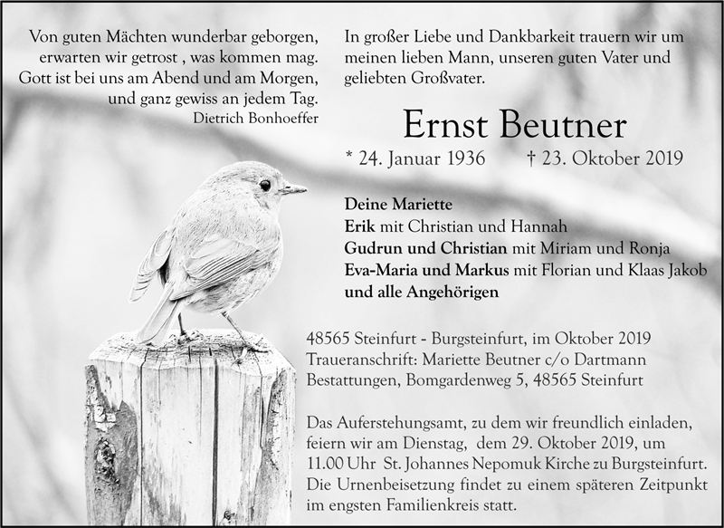 verbunden in der gemeinsamen Hoffnung auf Vollendung und das ewige Leben für unseren ehemaligen Kollegen im Kreisbildungswerk Steinfurt möchten wir Ihnen herzliche Worte des Trostes und der Anteilnahme zum Ausdruck bringen.