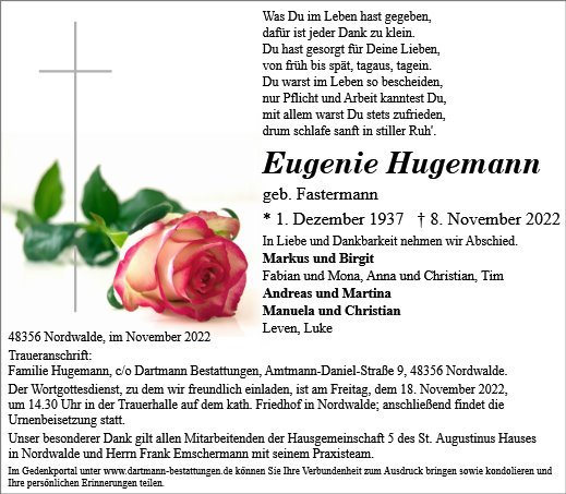 Eugenie Hugemann geb. Fastermann