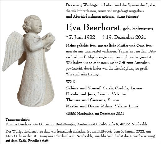 wir wünschen Ihnen von Herzen viel Kraft, dass Sie Menschen um sich haben, die Ihnen in dieser schweren Zeit beistehen und Halt geben. Zusätzlich können Sie auf dieser Gedenkseite Erinnerungen teilen und so das Andenken gemeinsam wachhalten.