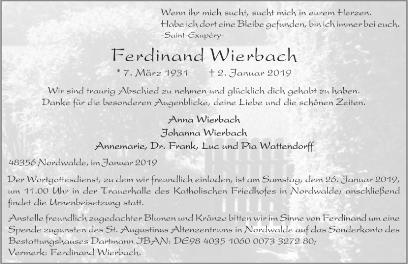 Ferdinand Wierbachgestorben am 2. Januar 2019