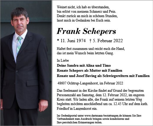 Mit Frank verlieren wir einen Aufrichtigen und geschätzten Arbeitskollegen.
