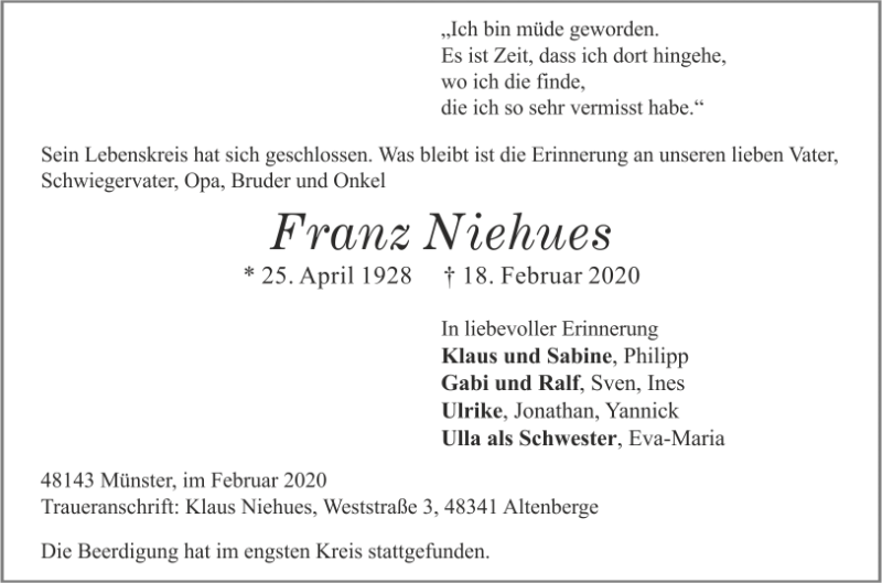 gestorben am 18. Februar 2020