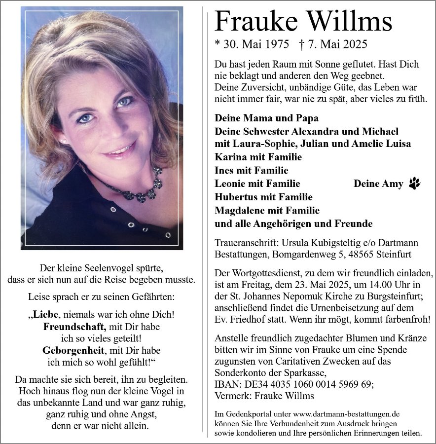 Frauke Willmsgestorben am 7. Mai 2025