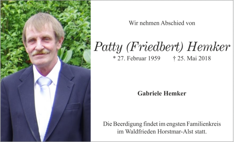 Friedbert Hemkergestorben am 25. Mai 2018