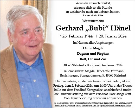 Wir werden unseren Onkel Bubi immer in Erinnerung behalten als fröhlichen, liebenswerten Menschen.