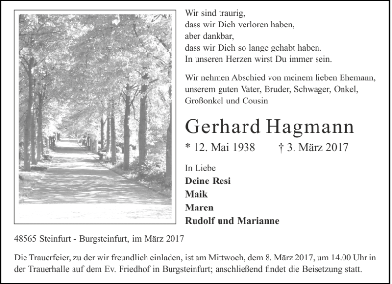 Gerhard Hagmanngestorben am 3. März 2017