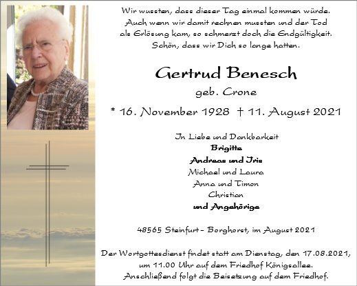 Gertrud Benesch geb. Crone