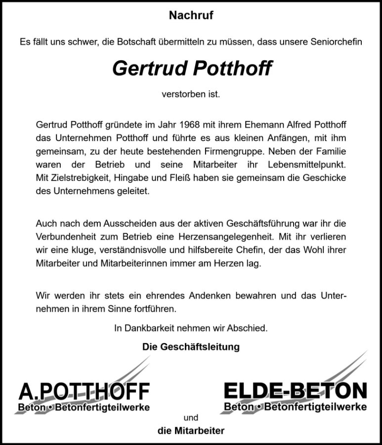 Die Nachricht vom Tode Gertruds kam für uns ganz unvermittelt.