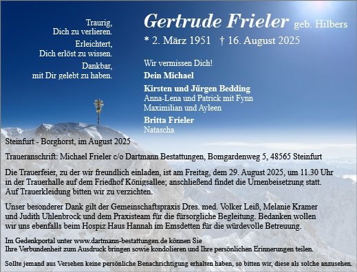 Sprechen Sie im Kondolenzbuch den Hinterbliebenen Ihr Beileid aus und teilen Sie persönliche Gedanken und Erinnerungen mit anderen.