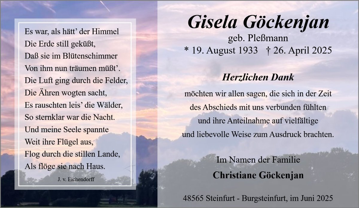 Gisela Goeckenjangestorben am 26. April 2025