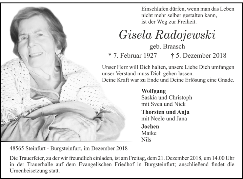 Gisela Radojewskigestorben am 5. Dezember 2018
