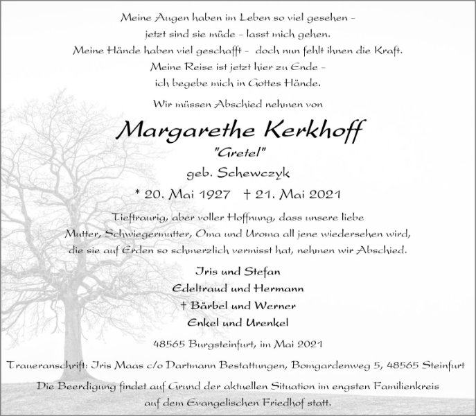 wir wünschen Ihnen von Herzen viel Kraft, dass Sie Menschen um sich haben, die Ihnen in dieser schweren Zeit beistehen und Halt geben. Zusätzlich können Sie auf dieser Gedenkseite Erinnerungen teilen und so das Andenken gemeinsam wachhalten.