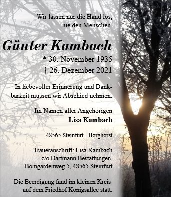 wir wünschen Ihnen von Herzen viel Kraft, dass Sie Menschen um sich haben, die Ihnen in dieser schweren Zeit beistehen und Halt geben. Zusätzlich können Sie auf dieser Gedenkseite Erinnerungen teilen und so das Andenken gemeinsam wachhalten.