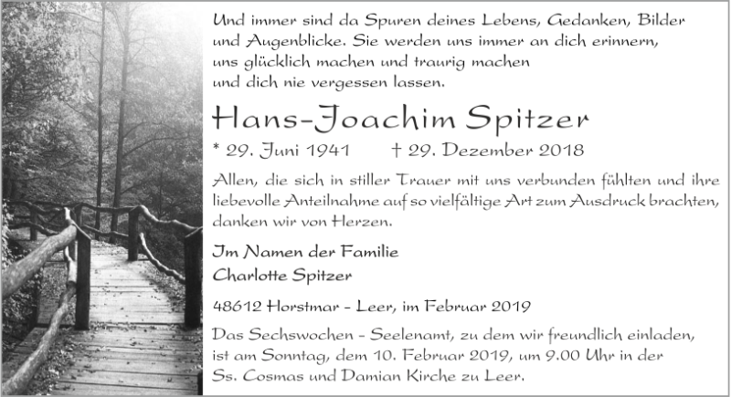 Hans-Joachim Spitzergestorben am 29. Dezember 2018