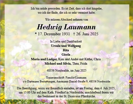 Sprechen Sie im Kondolenzbuch den Hinterbliebenen Ihr Beileid aus und teilen Sie persönliche Gedanken und Erinnerungen mit anderen.