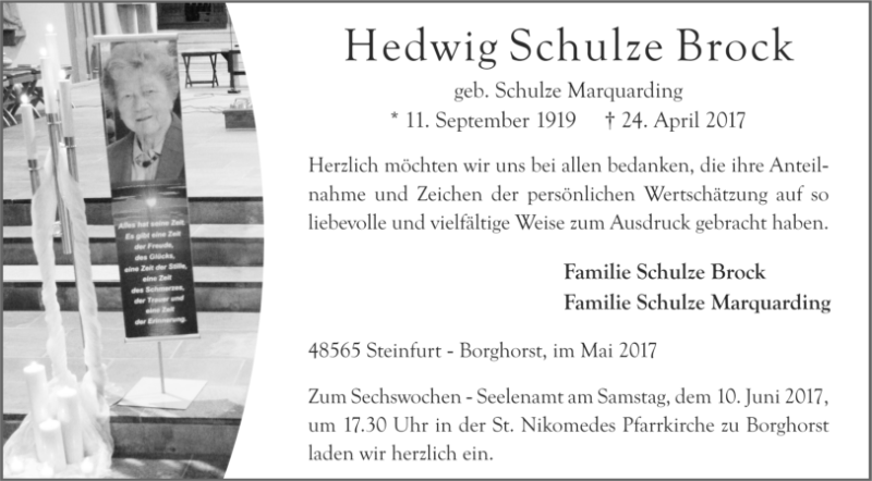 Hedwig Schulze Brock geb. Schulze Marquarding