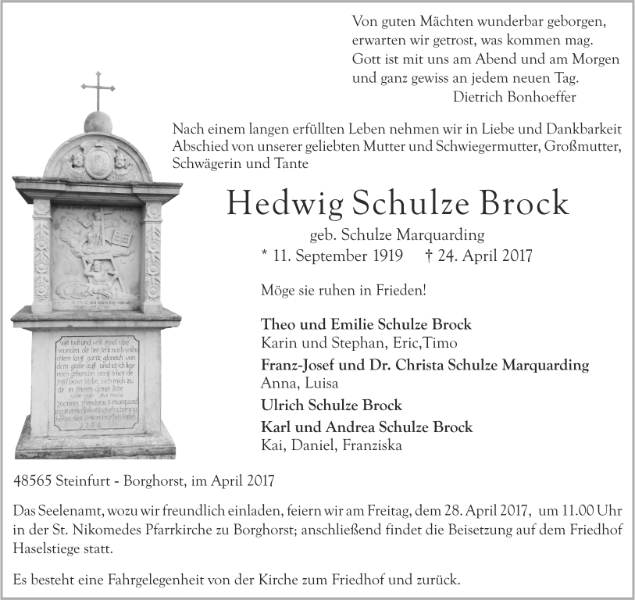 Hedwig Schulze Brockgestorben am 24. April 2017