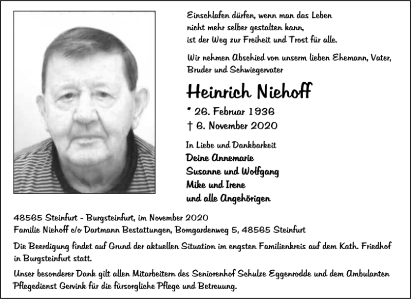 Heinrich Niehoffgestorben am 6. November 2020