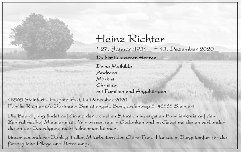 wir wünschen Ihnen von Herzen viel Kraft, dass Sie Menschen um sich haben, die Ihnen in dieser schweren Zeit beistehen und Halt geben. Zusätzlich können Sie auf dieser Gedenkseite Erinnerungen teilen und so das Andenken gemeinsam wachhalten.