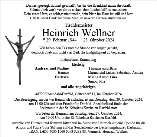 geboren am 29. Februar 1944 in Darfeld, jz. Rosendahl