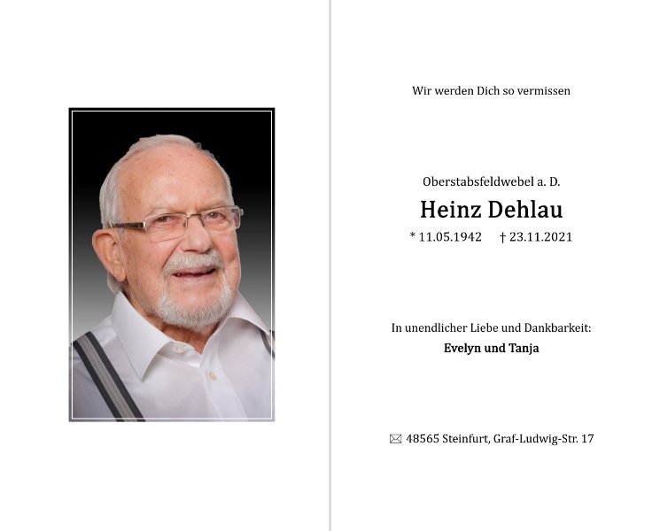 Heinz Dehlaugestorben am 23. November 2021