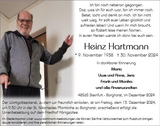 Lieber Heinz, wir werden Dich als guten Freund in Erinnerung behalten.