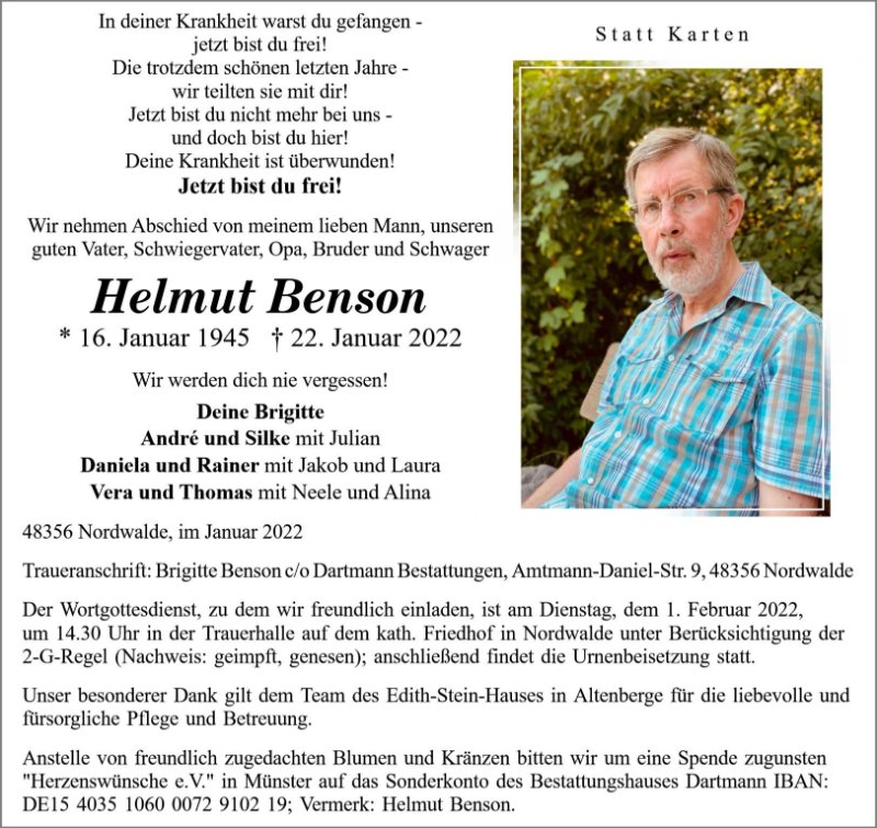 wir wünschen Ihnen von Herzen viel Kraft, dass Sie Menschen um sich haben, die Ihnen in dieser schweren Zeit beistehen und Halt geben. Zusätzlich können Sie auf dieser Gedenkseite Erinnerungen teilen und so das Andenken gemeinsam wachhalten.