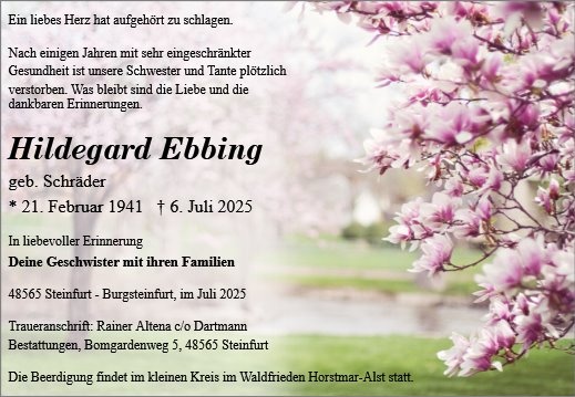 gestorben am 6. Juli 2025 in Schöppingen - Eggerode