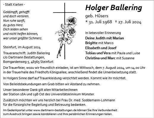 Liebe Judith und Familie, ich wünsche euch, dass ihr euch auf eurem Weg, gerade in dieser schweren Zeit, auch getragen fühlen könnt.