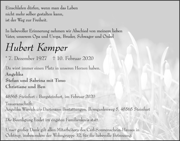 Sehen Sie hier die Termine der Abschieds- und Trauerfeierlichkeiten.