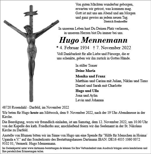 der plötzliche Tod von Ihrem Mann und Eurem Vater hat uns sehr gerührt.